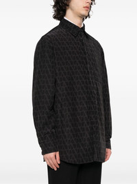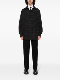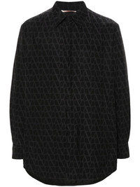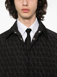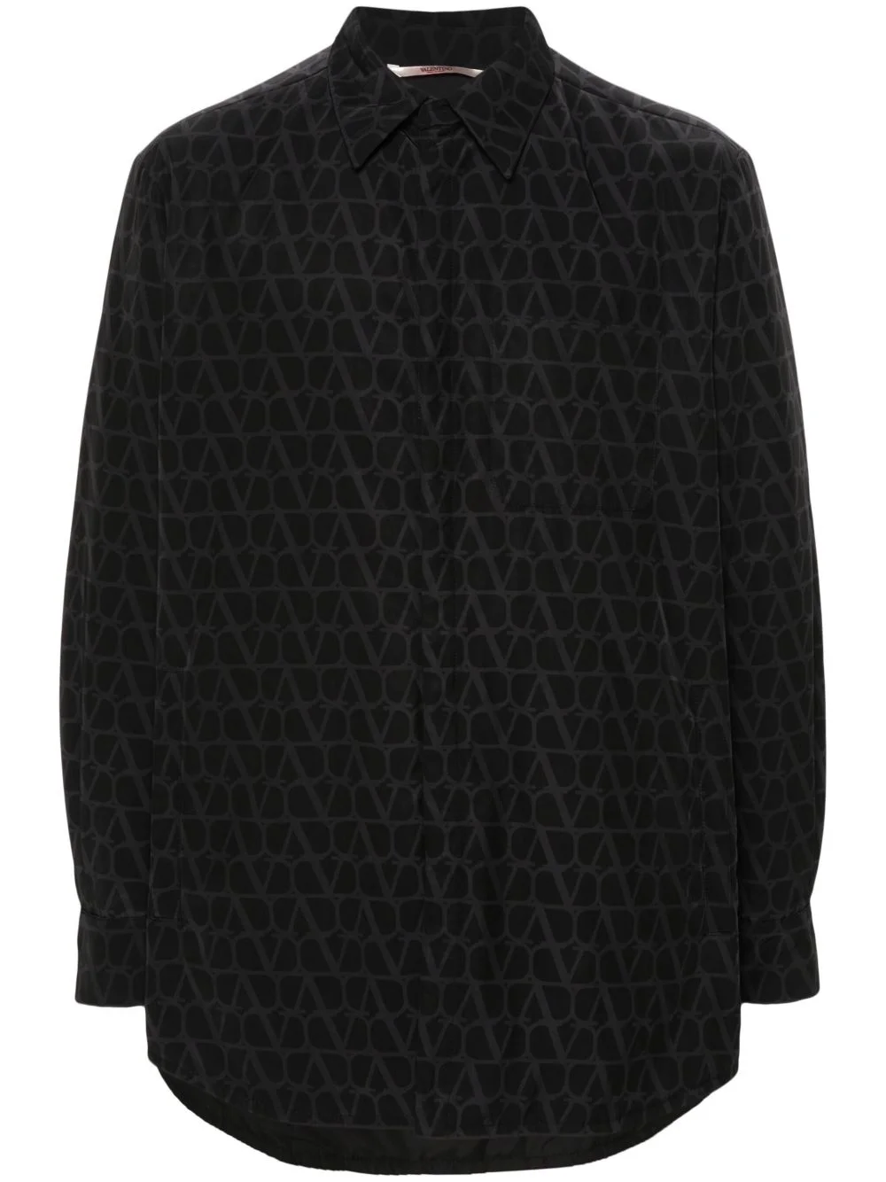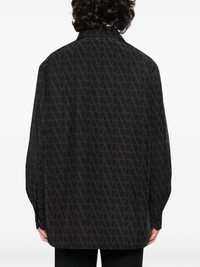 Toile Iconographe shirt jacket Valentino Garavani's hypnotically repeated take on the VLogo Signature takes centre stage for SS23 in the form of the Toile Iconographe pattern. Rendered here in a tonal iteration, it lends this black shirt a particularly bold aesthetic. Highlights - Valentino ready to wear - Black - All-over toile iconographe print - Classic collar - Long sleeves with buttoned cuffs - Chest patch pocket - Full lining - Internal slip pocket - Internal logo patch - Curved hem - Front button fastening Made in Italy Composition Outer: Polyester 100% Lining: Polyester 100% SIZE & FIT Model measurements Height 6 ft 1 in(1.85 m) Bust/Chest 36.22 in(92 cm) Hips 36.22 in(92 cm) Waist 27.55 in(70 cm) FittingInformation Designed to be unstructured, offering a loose fit throughout Made from a padded non-stretch fabric, giving it no natural elasticity This piece fits true to size – take your usual size Washing instructions Machine Wash