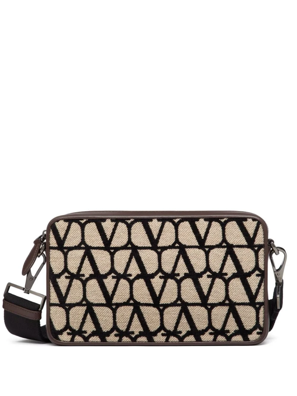 Toile Iconographe shoulder bag Valentino Garavani's Toile Iconographe is an optical pattern that plays on the VLogo Signature. It covers this shoulder bag, which is jacquard-woven and trimmed with smooth leather. Highlights - Beige/black/brown - Cotton blend - Leather trim - Toile iconographe pattern - Detachable shoulder strap - Top zip fastening - Main compartment Made in Italy Composition Outer: Goat Skin 100%, Cotton 40%, Viscose 33%, Polyester 27% Lining: Lambskin 100% Metal 100% SIZE & FIT Measurement DEPTH 2.75 in(7 cm) HEIGHT 6.29 in(16 cm) WIDTH 9.84 in(25 cm) Washing instructions Read Manufacturer Guidelines