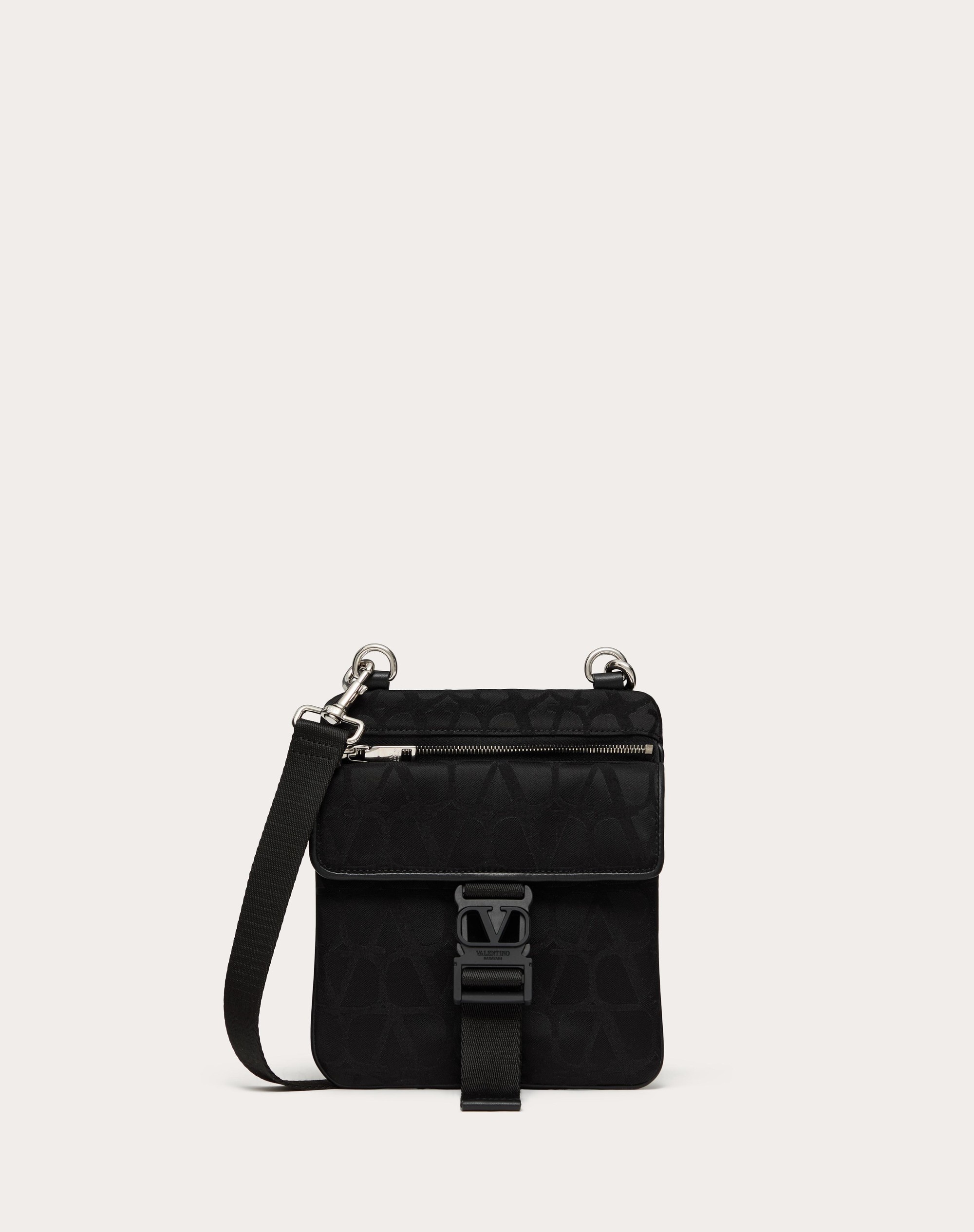 Valentino Garavani shoulder bag in Toile Iconographe technical fabric with leather details. - Calfskin details - Palladium-finish hardware - Zipper closure - Exterior: one slip pocket with flap and VLogo tuck lock clasp - Adjustable and removable ribbon shoulder strap - Shoulder strap drop length: 50 cm / 19.7 in. - Valentino Garavani logo - Dimensions: W20 x H18 x D2 cm / W7.9 x H7.1 x D0.8 in. - Made in Italy Product code: 5Y2P0U98CSH_0NO