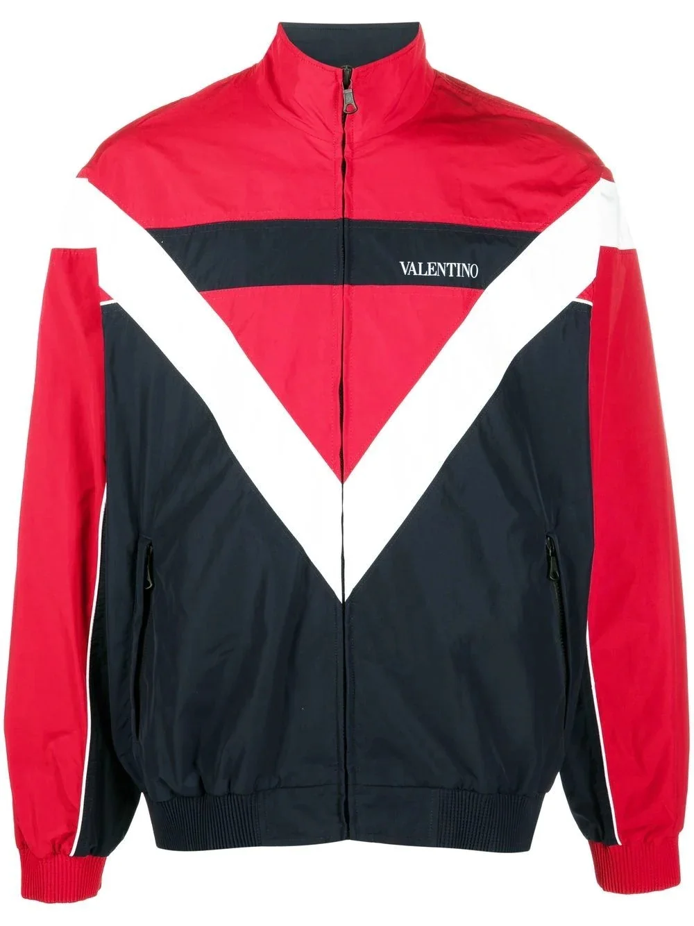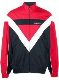 VLogo-print sports jacket Valentino Garavani applies their expert Italian design prowess to this tri-colour sportswear jacket for AW22. Fabricated from a cotton-blend, the zip-front design features a stand-up collar and two side zip-fastening pockets. Highlights - Valentino ready to wear - Red/white/blue - Cotton blend - Logo print at the chest - Tonal stitching - Stand-up collar - Front zip fastening - Two zip-fastening pockets - Piped-trim detailing - Long sleeves - Elasticated cuffs - Elasticated hem - Mesh lining Made in Italy Composition Outer: Polyester 62%, Cotton 38% Lining: Polyamide 100%, Polyester 100% SIZE & FIT Model measurements Height 6 ft 3 in(1.9 m) Bust/Chest 38.18 in(97 cm) Hips 37.79 in(96 cm) Waist 32.67 in(83 cm) FittingInformation This piece fits true to size. We recommend you get your regular size Cut for a loose fit Made with a mid-weight fabric Washing instructions Read Manufacturer Guidelines