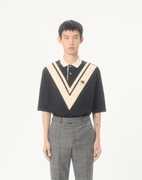 VALENTINO COTTON POLO WITH INLAID V AND EMBROIDERED PANTHER PATCH