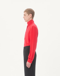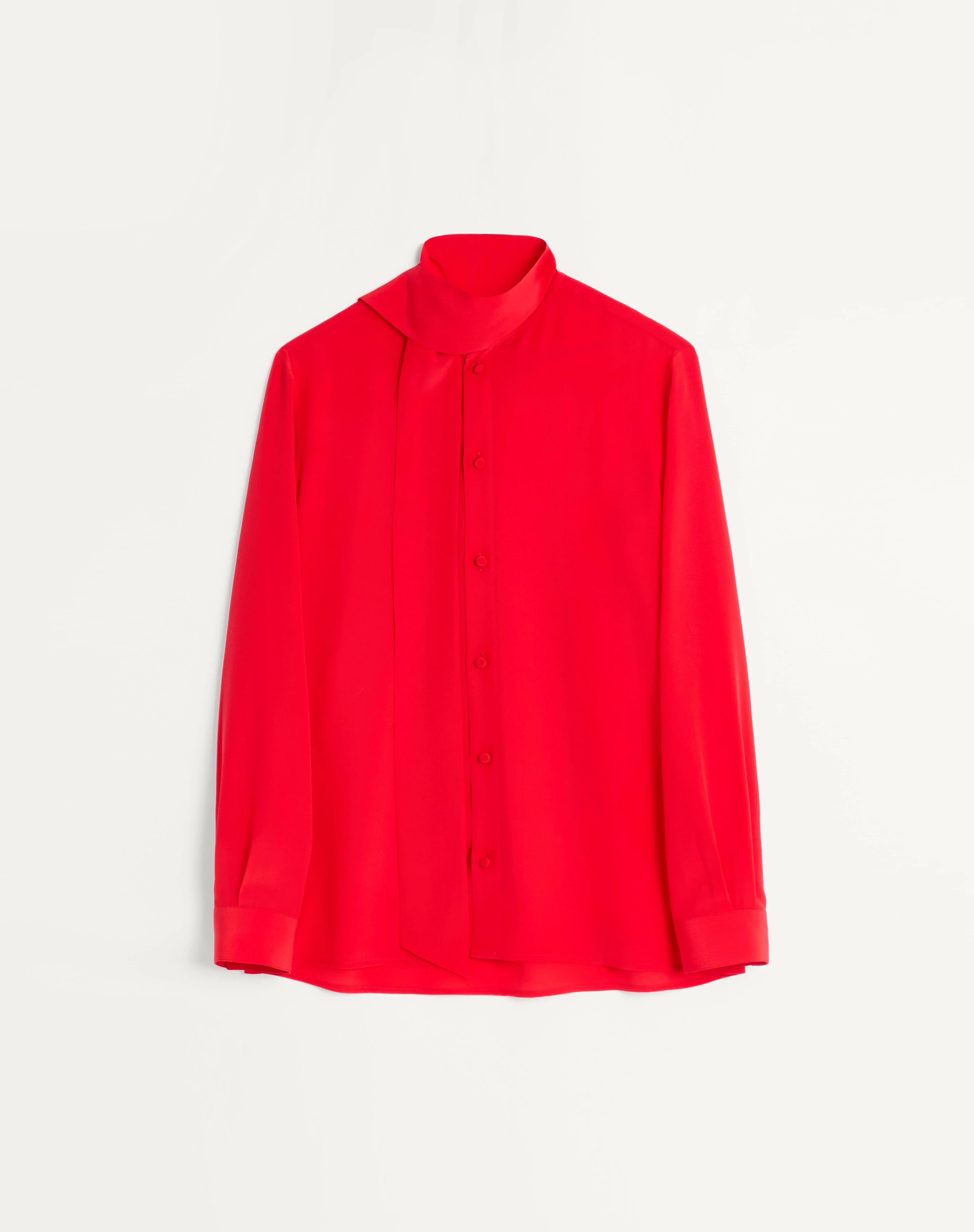 Valentino crepe de chine silk shirt with scarf collar - Slim fit - Scarf collar - Composition: 100% Silk - Length: 78.4 cm / 30.9 in. from the back of the neck in an Italian 39 - The model is 187 cm / 6'1" tall and wears an Italian size 39 - Made in Italy The look of the model is completed by a Valentino Garavani Nellcote Bag and Valentino Garavani Babouchoues Shoes. Product code: 7V0ABT01B3N_WUD