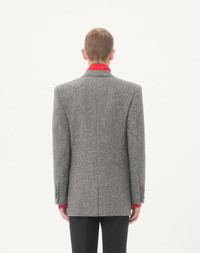 Valentino double-breasted jacket in natte boutonne wool - Regular fit - Lined - Full canvas construction - Peaked lapels - Two front flap pockets - Composition: 85% Wool, 15% Polyamide - Lining: 100% Cupro - Length: 74 cm / 29.1 in. from the back of the neck in an Italian size 44 - The model is 187 cm / 6'1" tall and wears an Italian size 44 - Made in Italy The look of the model is completed by a Valentino Garavani Nellcote Bag and Valentino Garavani Babouchoues Shoes. Product code: 7V0CEJ25B4K_0AN