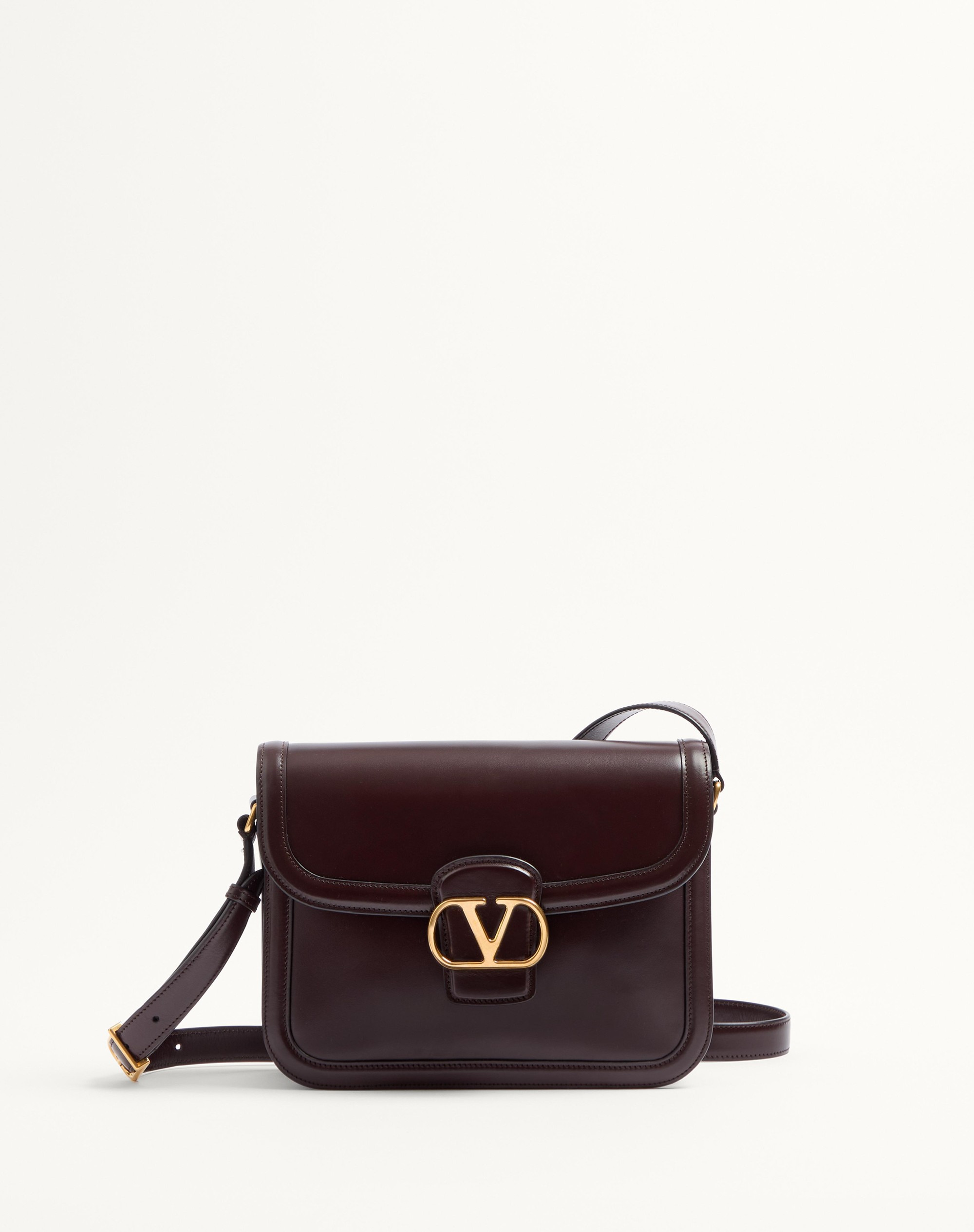 Valentino Garavani 9TO5 shoulder bag in smooth calfskin with VLogo Signature closure. The bag can be carried on the shoulder/cross-body thanks to the adjustable leather shoulder strap. - Antique brass-finish hardware - Magnetic closure with logo - Nappa leather lining. Interior: three compartments, slip pocket with button - Shoulder strap drop length: 33 cm / 12.9 in. at the center hole - This model has an additional section of the shoulder strap that can be attached to the bag by buckles - Shoulder strap drop length with additional section: 48 cm / 18.8 in. at the central hole - Dimensions: W24.5xH18.5xD8 cm / W9.6xH7.2xD3.1 in. - Made in Italy Product code: 6W2B0R15UHF_REL