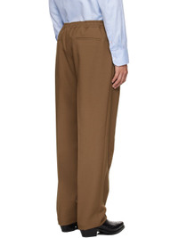 Gabardine trousers. · Drawstring at elasticized waistband · Four-pocket styling · Zip fly · Pinch seams at front · Unfinished hem · Creased legs at back Supplier color: Wood noce Body: 100% polyester. Pocket lining: 100% cotton. Made in Italy 252476M191002