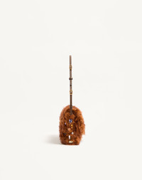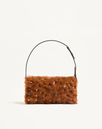 Valentino Garavani DeVain small shoulder bag in lambskin fur with rhinestones and metallic VLogo Signature detail. The bag can be carried by hand or worn over the shoulder. - Antique brass-finish hardware - Details and adjustable handle in grainy calfskin - Magnetic closure with VLogo in antique brass finish - Suede lining. Interior: slip pocket - This model has an additional leather section that can be attached to the bag with buckles - Handle strap drop length: 14 cm / 5.5 in. at the centre hole - Handle strap drop length: 14 cm / 5.5 in. at the centre hole - Dimensions: W23.5xH12xD3 cm / W9.2xH4.7xD1.2 in. - Made in Italy This product contains magnets. Please consider if this product will be worn within 15 cm from any implanted device. Any concerns please contact your healthcare professional. Product code: 7W0B0T32HUC_ACM