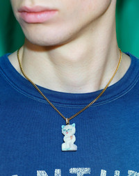 Valentino Garavani Le Chat de la Maison necklace in nylon and metal. - Gold-tone finish - "Le Chat de la Maison" nylon pendant (size: 2x4 cm / 0.8x1.6 in.) with gold-tone VLogo Signature accessory - Adjustable length from 65 to 75 cm / 25.6 to 29.5 in. - Snap hook closure - Made in Italy This product is not a toy but an item intended for adults, keep out of the reach of children. Product code: 7Y2J0AL5QYE_DY1