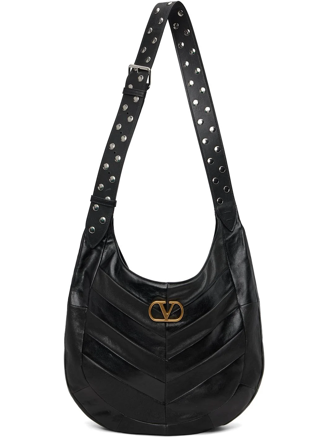 Black Boho Nappa Leather Chevron Pattern Bag