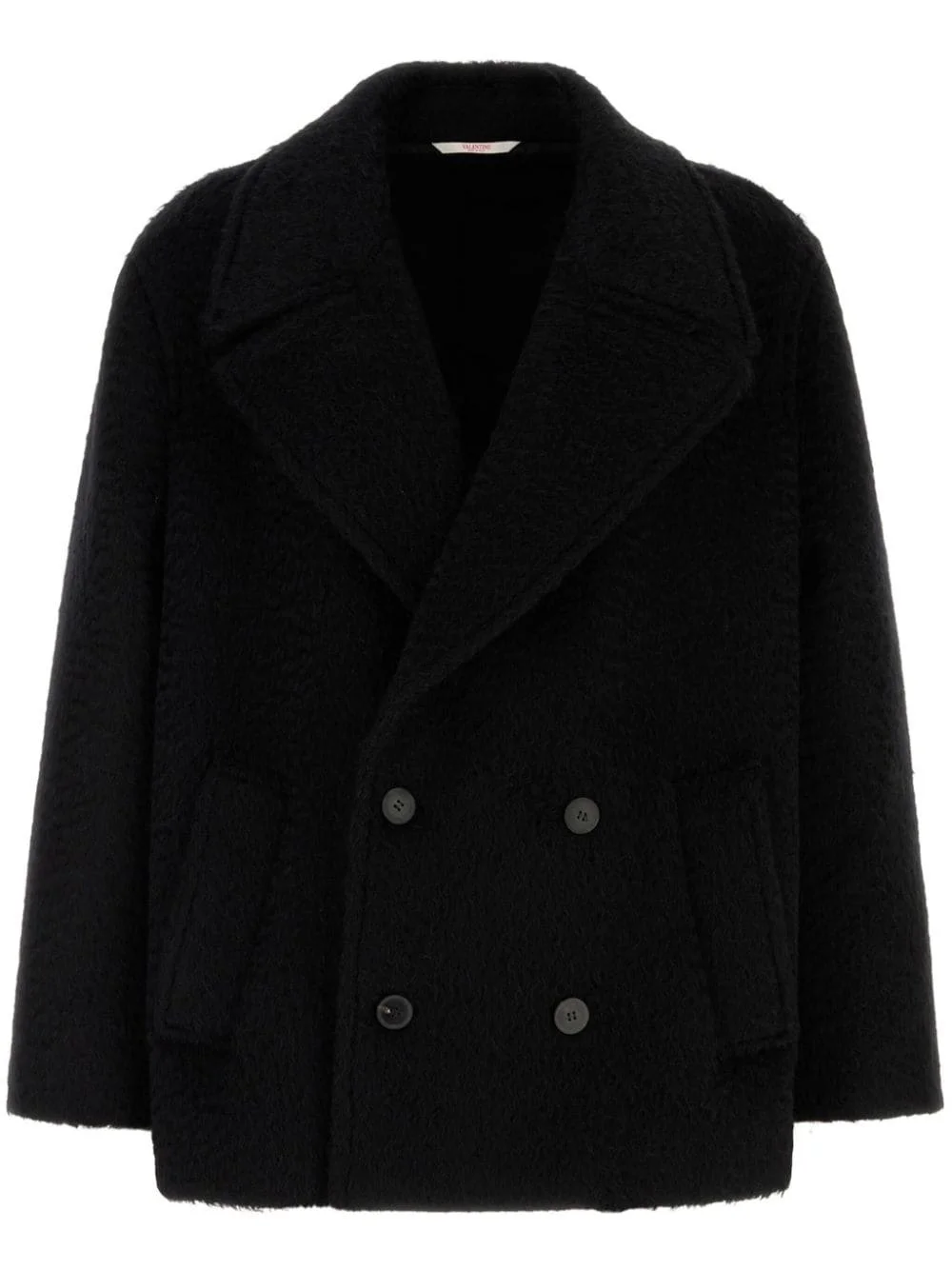 double breasted long sleeve jacket Highlights - Black - Wool-mohair blend - Double-breasted button fastening - Notched collar - Long sleeves - Straight hem Made in Italy Composition Mohair 50%, Virgin Wool 50%