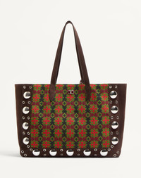 Valentino Garavani Nellcote large shopping bag in jacquard with geometric pattern. Suede trim decorated with ball studs and rivets. The bag can be comfortably worn on the shoulder or by hand thanks to the handles. - Palladium-finish hardware - Small metallic detail with VLogo Signature - Removable inner pouch - Shoulder strap drop length: 24 cm / 9.4 in. at the central hole - Dimensions: W46xH34xD15 cm / W15.7xH11.8xD5.1 in. - Made in Italy Product code: 6Y0B0D58ZVX_RCB