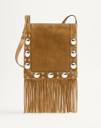 Valentino Garavani Nellcote suede shoulder bag with fringe and trim decorated with ball studs and rivets. The bag can be comfortably worn on the shoulder/crossbody thanks to the adjustable suede shoulder strap. - Palladium-finish hardware - Small metallic detail with VLogo Signature - Shoulder strap drop length: 45 cm / 17.7 in. at the center hole - Dimensions: W30xH31xD3 cm / W11.8xH12.2xD1.2 in. - Made in Italy Product code: 6Y2B0D06SVI_RDX