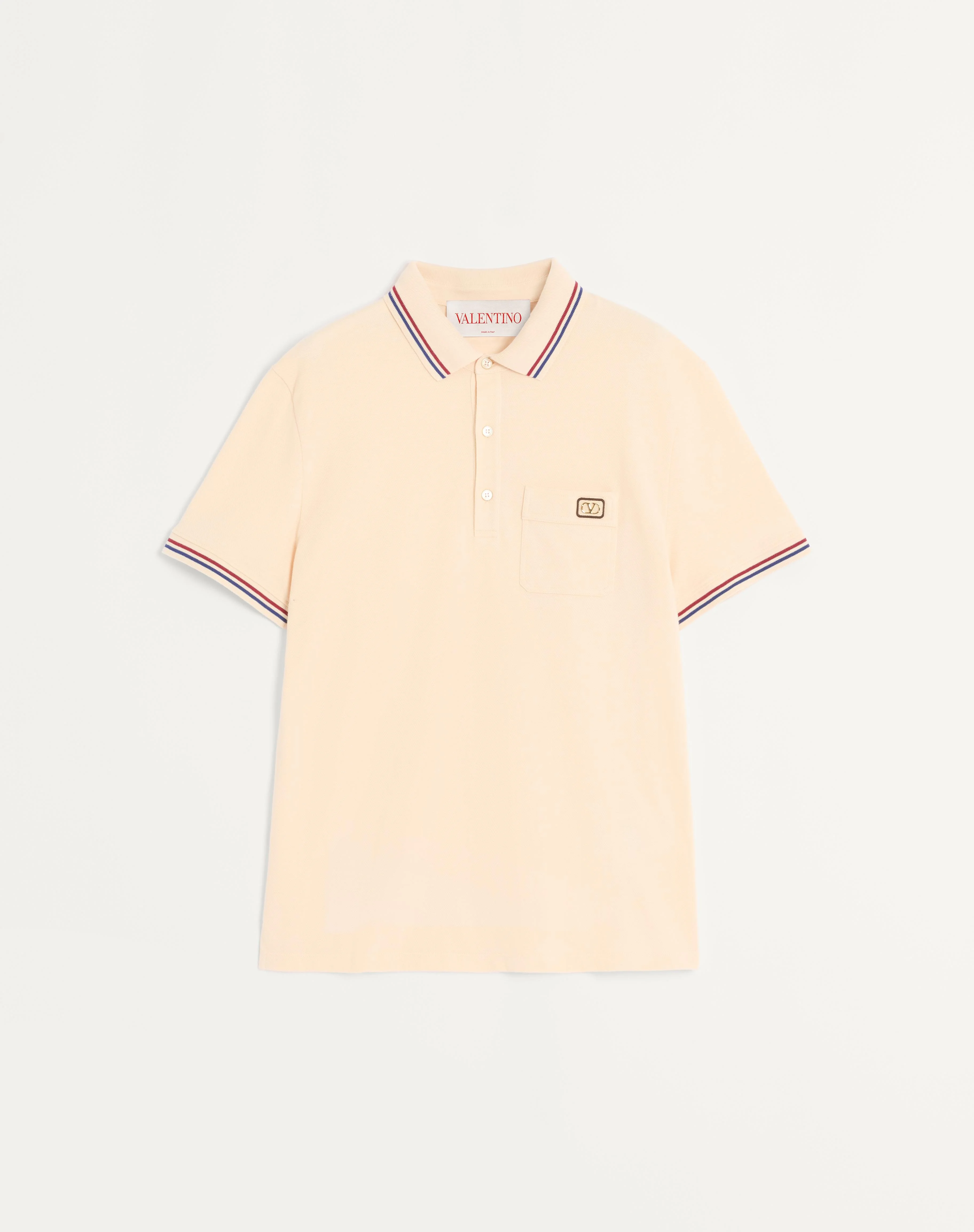 Valentino cotton pique polo shirt with VLogo patch - Regular fit - VLogo Signature patch on left breast as worn - Composition: 100% Cotton - Length: 70 cm / 27.6 in. from the back of the neck in a size M - The model is 187 cm / 6'1" tall and wears a size M - Made in Italy Product code: 6V3MH01KAQJ_581