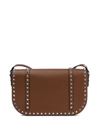 Rockstud messenger bag Highlights - Chocolate brown - Foldover top with magnetic fastening - Adjustable shoulder strap - Internal zip-fastening pocket - This piece comes complete with a protective dust bag. Made in Italy Composition Outer: Calf Leather 100% SIZE & FIT Measurement DEPTH 2.75 in(7 cm) HEIGHT 6.49 in(16.5 cm) WIDTH 11.02 in(28 cm)