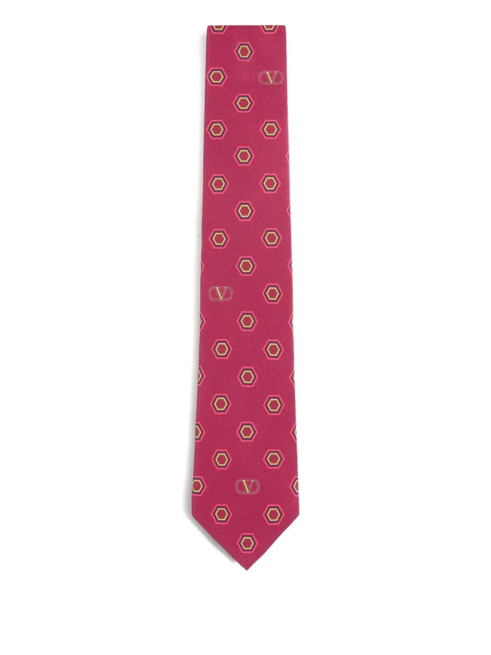 geometric-pattern silk tie Highlights - Wine red - Geometric pattern - Jacquard logo - Pointed tip Made in Italy Composition Silk 100% SIZE & FIT Measurement LENGTH 57.08 in(145 cm) WIDTH 2.75 in(7 cm) Washing instructions Read Manufacturer Guidelines