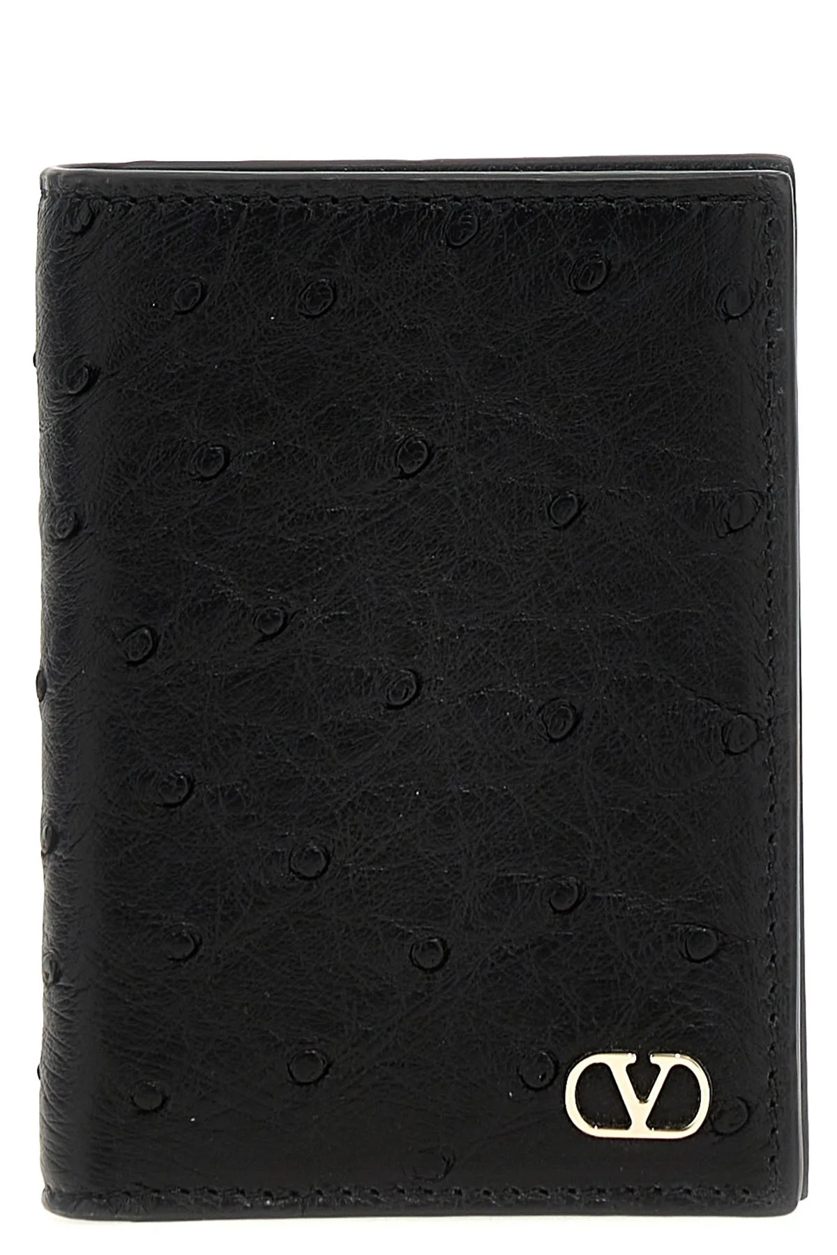 cod. Y2P0V06RJA0NO Ostrich leather card holder, metal 'VLogo Signature' on the front, book opening. Color: Black Size & Fit: W 8 x H 11.5 x D 2 cm Composition: 100% ostrich leather Made in: Italy
