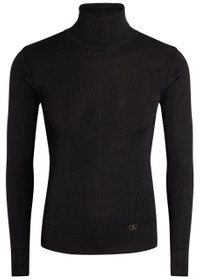 Info & Care Valentino fine-knit jumper Roll-neck, VLogo plaque at hem Slips on; 100% viscose; Dry clean; Size & Fit Length shoulder to hem: 25.5 inches/ 65cm; Midweight Slim fit Model is 6'2"/ 188cm, chest size 38 inches and wears a size medium;