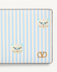 VALENTINO GARAVANI VLOGO SIGNATURE WALLET IN GRAINY CALFSKIN WITH LE CHAT DE LA MAISON PRINT