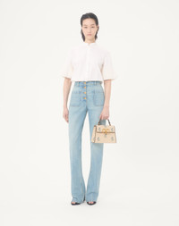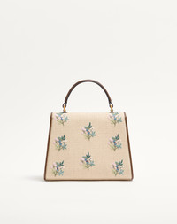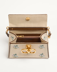 Valentino Garavani VSling small embroidered linen handbag with floral pattern, leather trim, and VLogo Signature closure. Equipped with a handle and an extendable shoulder strap, the bag can be handheld or worn crossbody/over the shoulder. - Hardware with antique brass finish - Linen lining - Interior: single compartment, zipper pocket - Protective feet - Leather shoulder strap with adjustable chain element - Shoulder strap drop length: min 45 cm - max 59 cm / min 17.7 in. - max 23.2 in. - Dimensions: W22 x H17 x D9 cm / W8.7 x H6.6 x D3.1 in - Made in Italy This product contains magnets. Please consider if this product will be worn within 15 cm from any implanted device. Any concerns please contact your healthcare professional. Product code: 8W0B0T48VGL_BBX