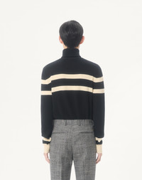 Valentino high-neck wool sweater with VLogo embroidery - Slim fit - Gauge: 7 - VLogo embroidery at the bottom - Composition: 100% Wool - Length: 66 cm / 25.9 in. from the back of the neck in an Italian size M - The model is 187 cm / 6'1" tall and wears an Italian size M - Made in Italy Product code: 8V3KC36RBBJ_9RA