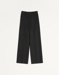 Valentino pinstripe pants in wool and silk - Regular fit - Two side pockets - Two back pockets - Composition: 96% Wool, 4% Silk - Length: 93.3 cm / 36.7 in. in an Italian size 46 - Leg opening: 29.5 cm / 11.6 in. in an Italian size 46 - The model is 187 cm / 5'9" tall and wears an Italian size 46 - Made in Italy The look of the model is completed by a Valentino Garavani Bag and Valentino Garavani Babouchoues Shoes. Product code: 7V0RBO00B41_0NI