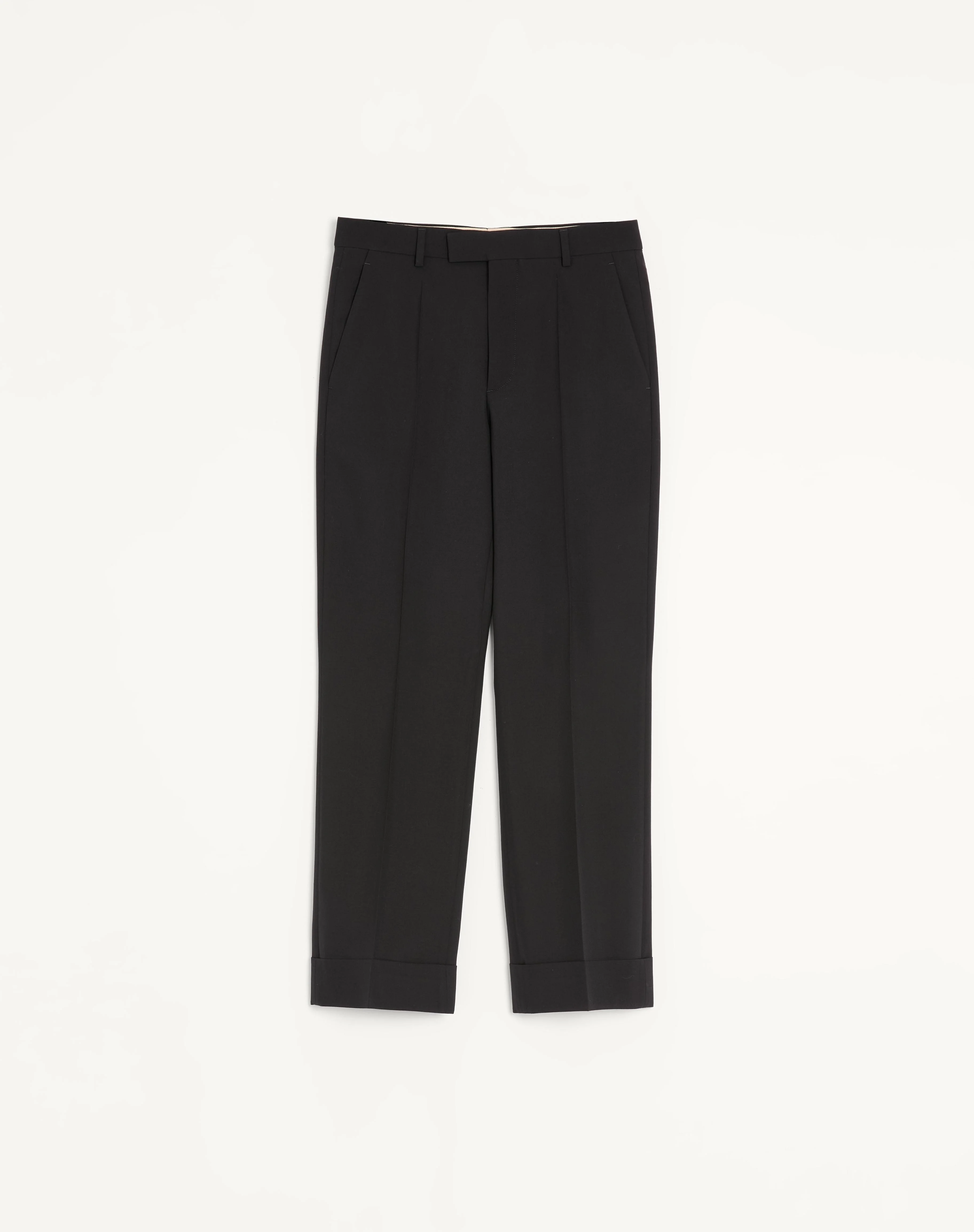 Valentino wool pants with cuffs - Slim fit - Two side pockets - Two back pockets - VLogo on back pocket - Composition: 100% Wool - Length: 108 cm / 42.5 in. in an Italian size 44 - Leg opening: 25.3 cm / 9.9 in. in an Italian size 44 - The model is 187 cm / 6'1" tall and wears an Italian size 44 - Made in Italy Product code: 8V3RBN858EJ_0NO