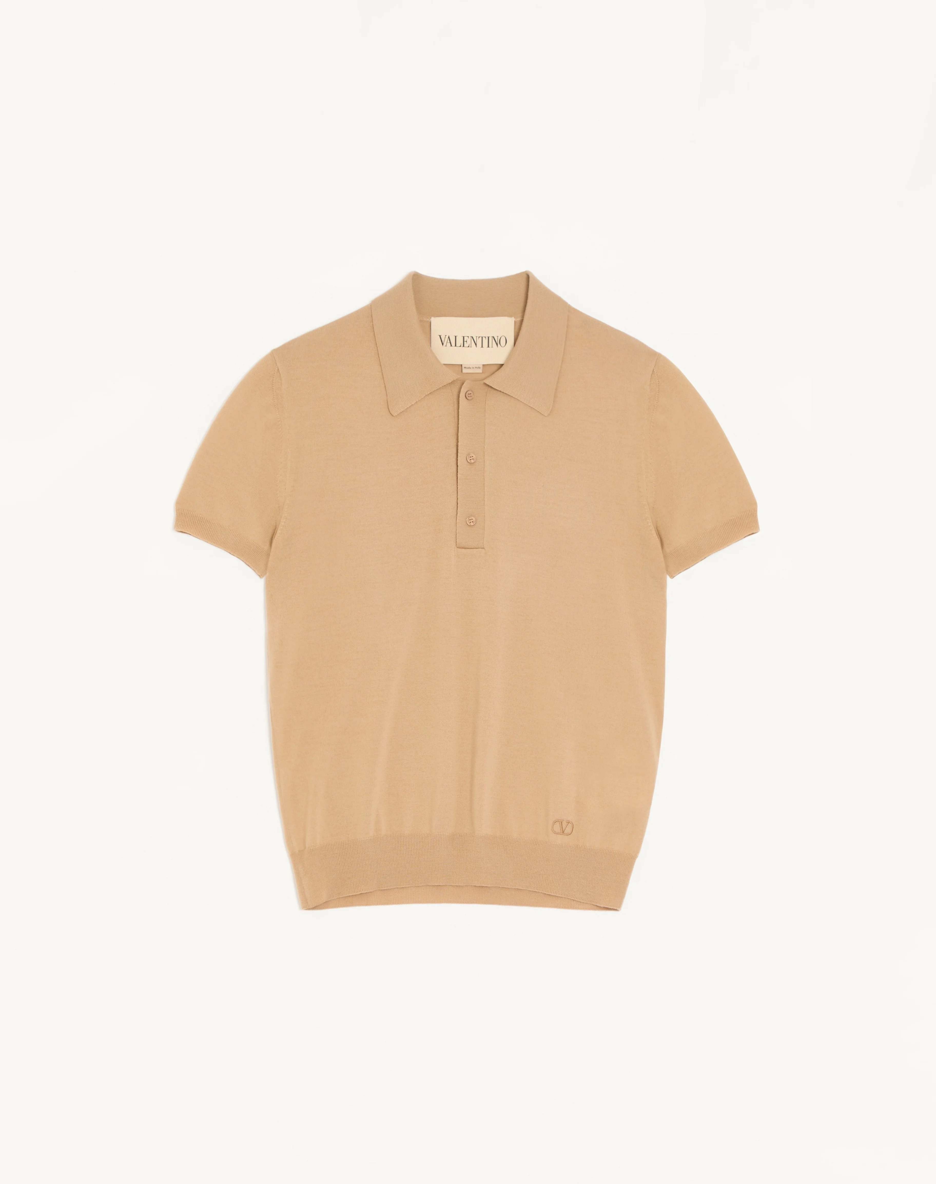 Valentino wool polo shirt with VLogo embroidery - Regular fit - Gauge: 18 - VLogo embroidery - Composition: 100% Wool - Length: 65 cm / 25.6 in. from the back of the neck in a size M - The model is 187 cm / 6'1" tall and wears a size M - Made in Italy Product code: 8V0KP04VBH9_0BG