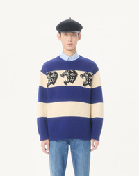Valentino wool sweater with jacquard Panther pattern - Regular fit - Gauge: 5 - Jacquard Panther pattern on the chest - Composition: 100% Wool - Length: 71 cm / 27.9 in. from the back of the neck in a size M - The model is 187 cm / 6'1" tall and wears a size M Made in Italy Product code: 8V3KC37MBBT_RGX