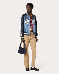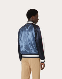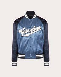Bomber jacket in viscose and cotton with embroidered Valentino patch - Regular fit - Lined - Embroidered Valentino patch on front side - Stud detail on back of the neck - Button fastening - Two side pockets -Ribbed elasticated trim - Composition: 67% Viscose, 33% Cotton - Lining: 100% Cupro - Length: 65 cm / 25.6 in. from back of the neck in Italian size 46 - The model is 187 cm / 6' 1" and wears an Italian size 46 - Made in Italy Product Code VCI0A08L9_7NA