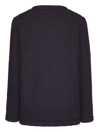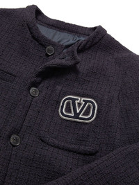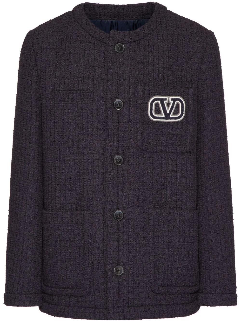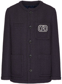 VLogo Signature tweed jacket Valentino Garavani's VLogo debuted at the Sala Bianca show in 1968 and has since become a house icon. It is seen here as a contrasting applique set on the chest of this tweed jacket – lending a branded appeal to the collarless design. Highlights - Navy blue - Tweed - Applique detail - Vlogo signature - Multiple patch pockets - Jetted chest pocket - Front button fastening - Collarless - Long sleeves - Straight hem Made in Italy Composition Outer: Cotton 74%, Viscose 22%, Polyamide 4% Lining: Cupro 100%, Polyester 100% Washing instructions Read Manufacturer Guidelines