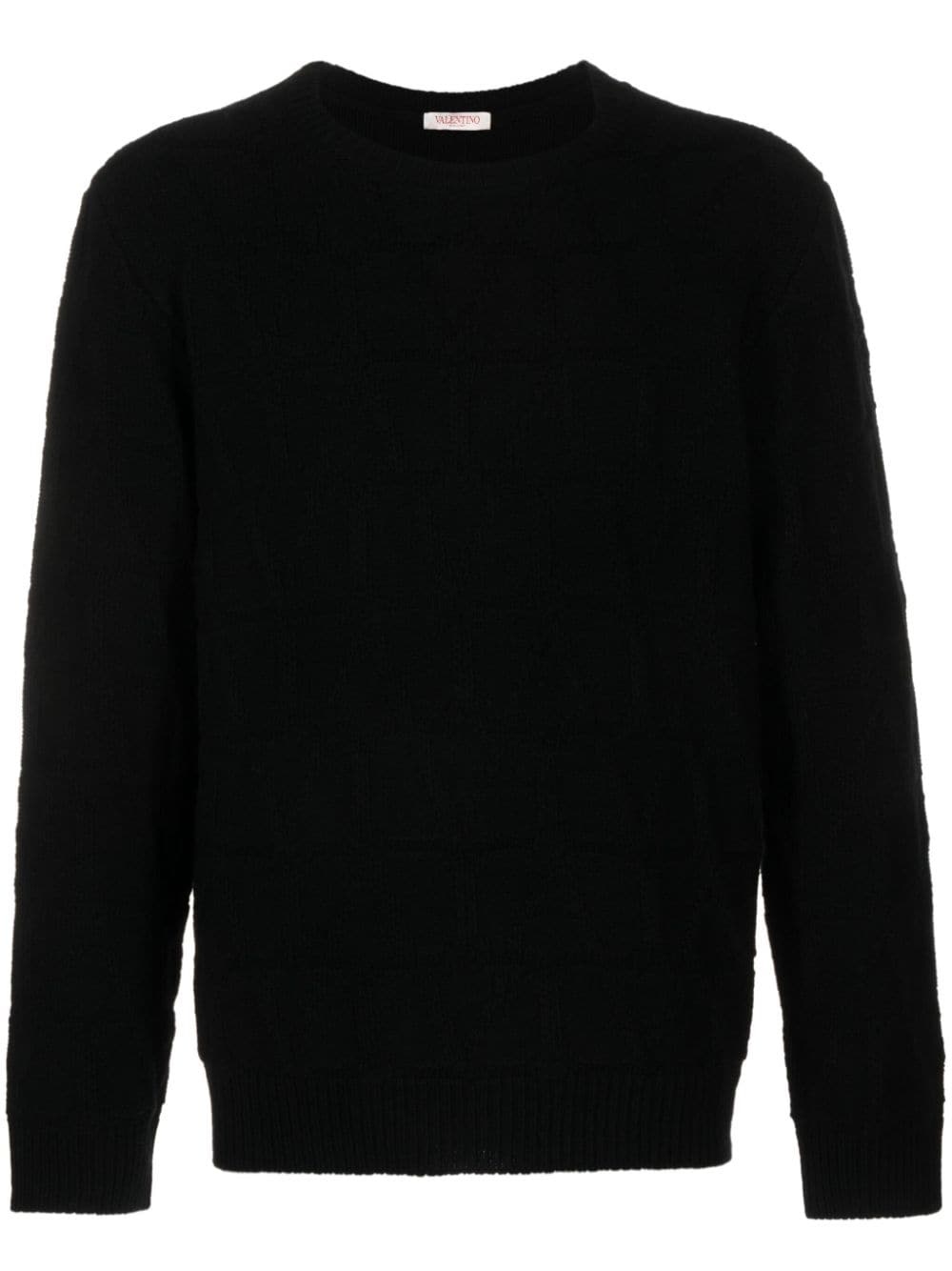 VLogo intarsia-knit jumper Valentino Garavani's jumper subtly celebrates the brand's signature VLogo Signature motif. Here, a tonal version decorates the chest of this virgin wool jumper. Highlights - Black - Virgin wool - Knitted construction - Vlogo signature - Patterned intarsia knit - Crew neck - Drop shoulder - Long sleeves - Ribbed cuffs and hem - Straight hem Made in Italy Composition Virgin Wool 100% SIZE & FIT Model measurements Height 6 ft 2 in(1.87 m) Bust/Chest 38.18 in(97 cm) Hips 36.61 in(93 cm) Waist 29.13 in(74 cm) FittingInformation Designed for a relaxed fit, this piece allows for comfort and movement when worn Made with a midweight knit, this piece offers some stretch This piece fits true to size – take your usual size Washing instructions Hand Wash