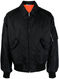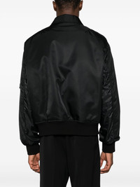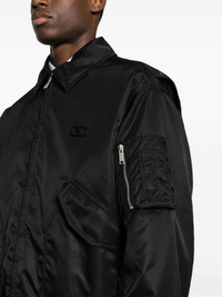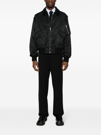 VLogo Signature-applique bomber jacket This black Valentino Garavani bomber jacket is as classic as it gets, save for the point collar and matching VLogo Signature applique at the chest – the heritage motif first debuted at the Sala Bianca show in 1968 and maintains its popularity to this day. Highlights - Valentino ready to wear - Shell - Vlogo signature applique at the chest - Classic collar - Front zip fastening - Long sleeves - Sleeve zip pocket - Two side flap pockets - Ribbed cuffs and hem - Straight hem - Contrast lining Made in Italy Composition Outer: Polyamide 100% Lining: Polyester 100% SIZE & FIT Model measurements Height 6 ft 2 in(1.88 m) Bust/Chest 34.64 in(88 cm) Hips 33.85 in(86 cm) Waist 27.55 in(70 cm) Washing instructions Dry Clean Only