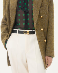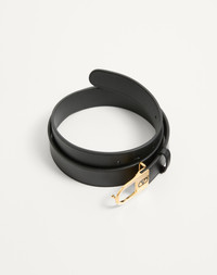 Valentino Garavani VLogo Signature belt in shiny calfskin leather. - Antique brass finish buckle with enameled VLogo Signature detail - Shiny calfskin exterior - Calfskin interior - Dimensions: H.30 mm / 1.2 in. - Made in Italy Product code: 7Y0T0ST8JAQ_0NO