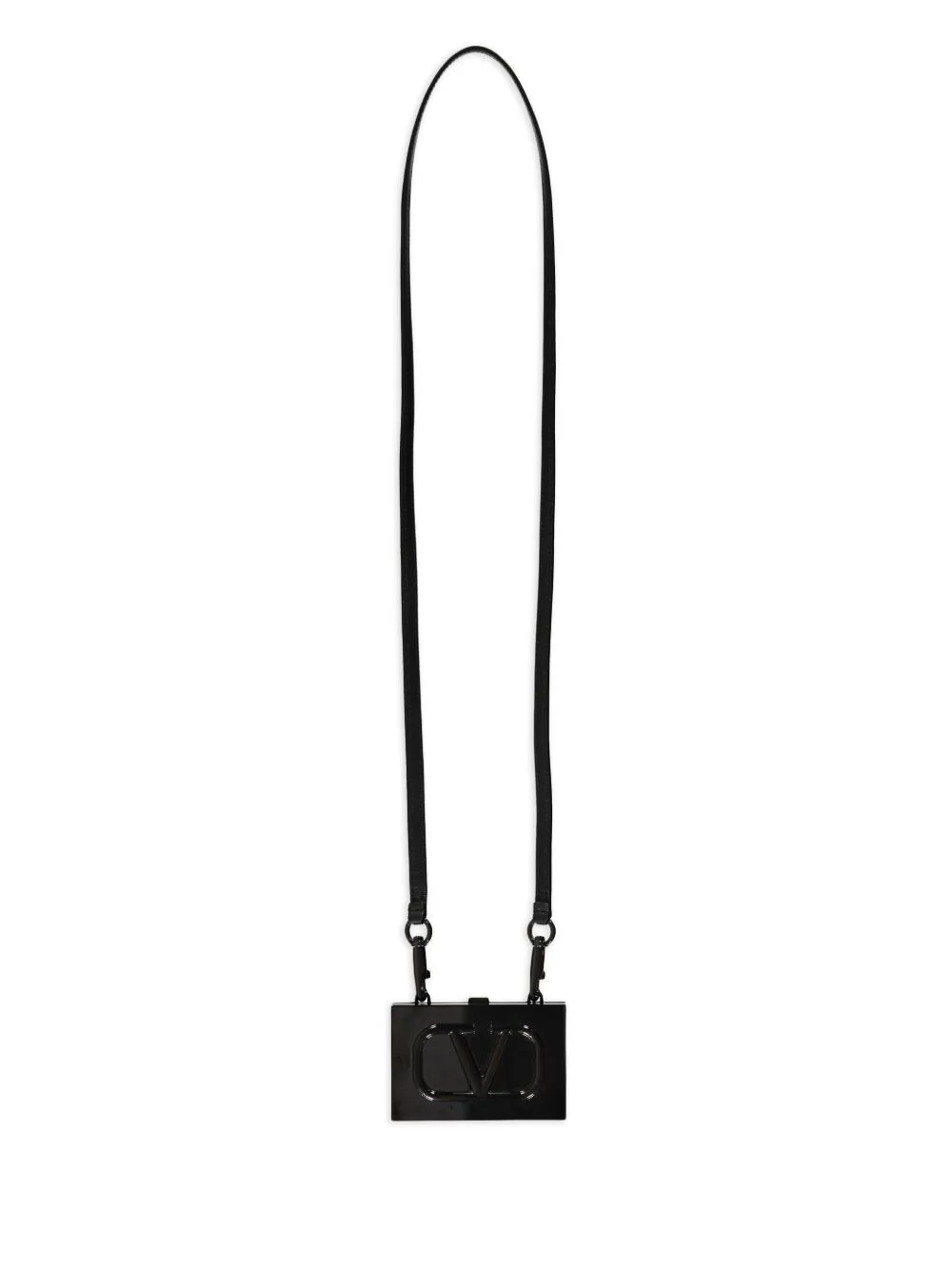 VLogo Signature card holder Highlights - Black - Vlogo signature detail - Detachable strap - Clasp fastening - Rectangular shape Made in Italy Composition Calf Leather 100%, Plastic 100%