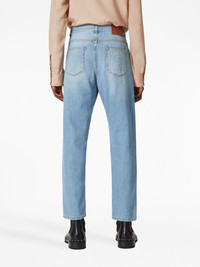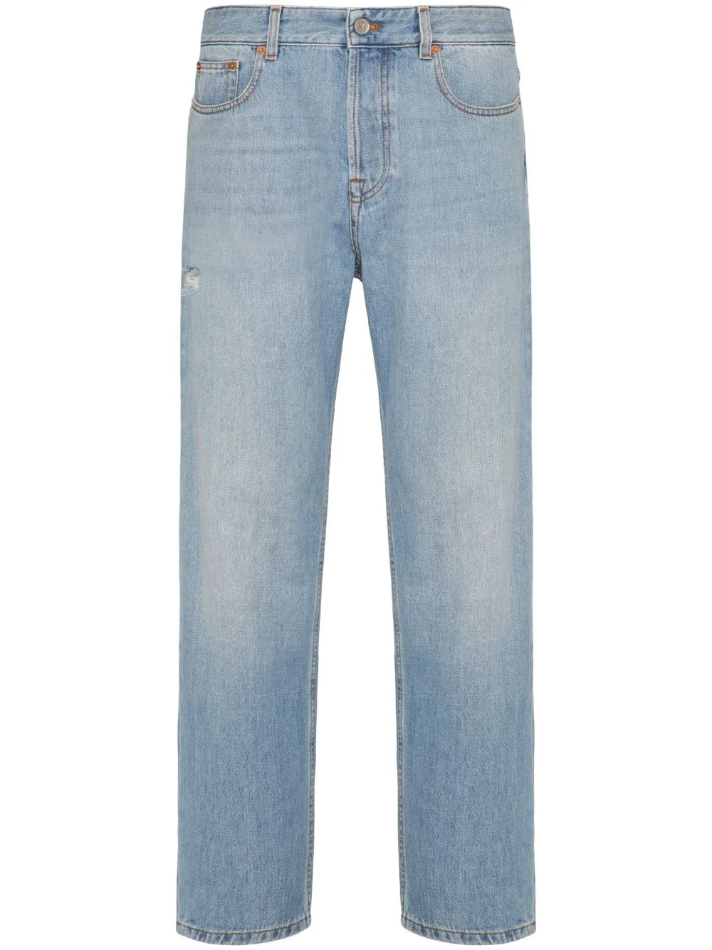 VLogo Signature jeans These AW23 jeans showcase Valentino Garavani's expertise in cut and craftsmanship. Cut in Italy from light blue cotton denim, the pair features a straight leg and stonewashed effect, for a slight lived-in feel, and is finished with the brand's signature VLogo Signature distressed onto the back pocket. Highlights - Valentino ready to wear - Light blue - Cotton - Denim - Stonewashed - Mid-rise - Logo patch to the rear - Vlogo signature - Belt loops - Front button fastening - Classic five pockets - Straight leg - The full look includes valentino garavani accessories. - The model is 187 cm / 6'1'' tall and wears an italian size 30 Made in Italy Composition Lining: Polyester 65%, Cotton 35% Outer: Calf Leather 100%, Cotton 86%, Hemp 14% Washing instructions Read Manufacturer Guidelines