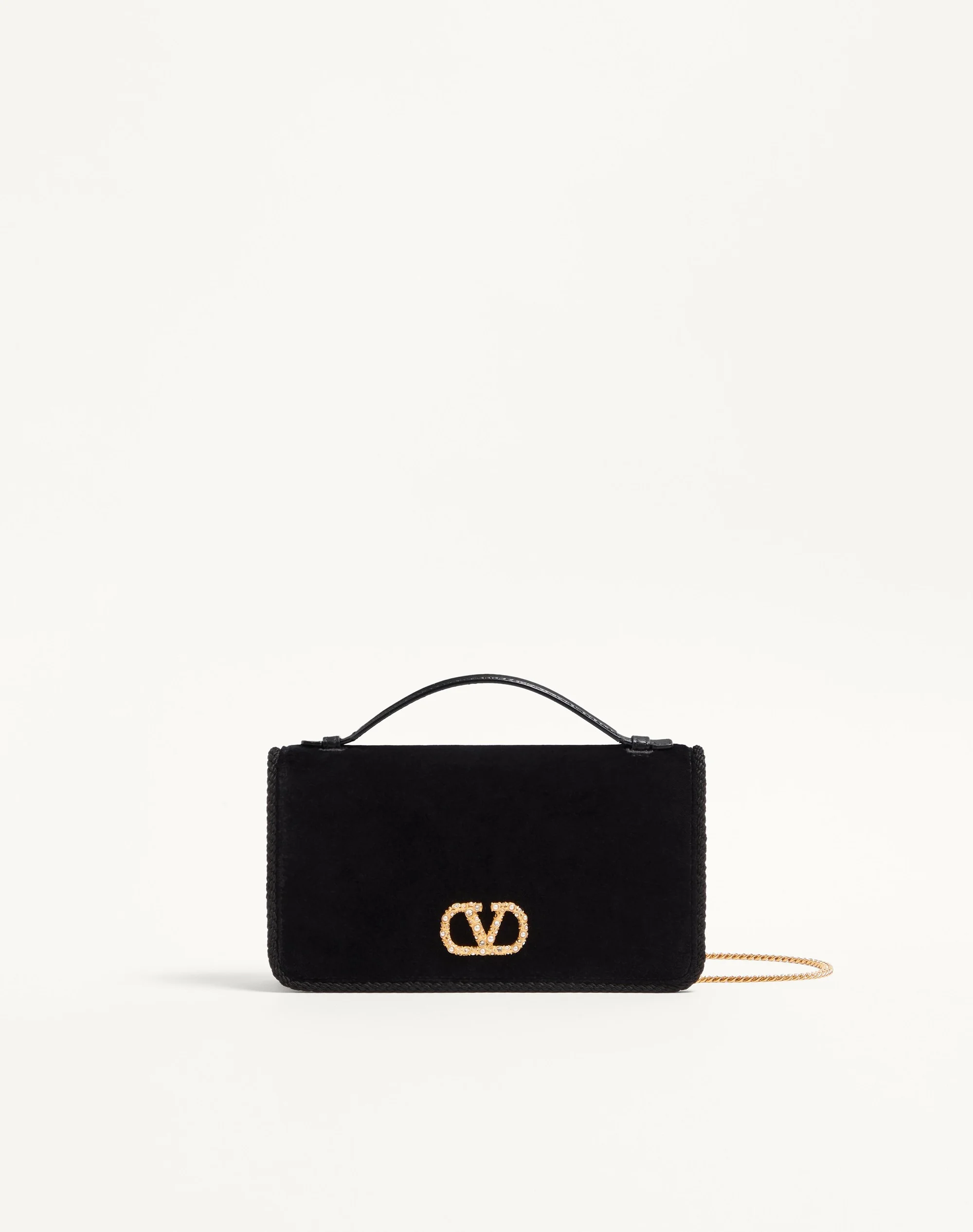VLOGO SIGNATURE VELVET CHAIN WALLET WITH JEWEL LOGO
