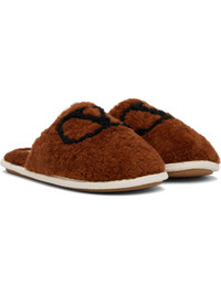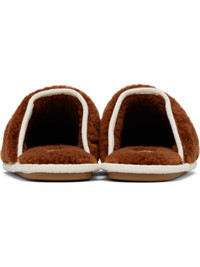 Fleece slippers. · Logo at vamp · Webbing trim at collar and welt · Treaded rubber sole Supplier color: Tobacco Upper: textile. Sole: rubber. Made in Italy 252807M231008