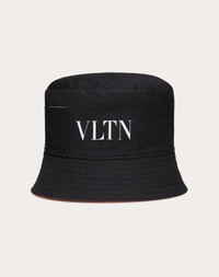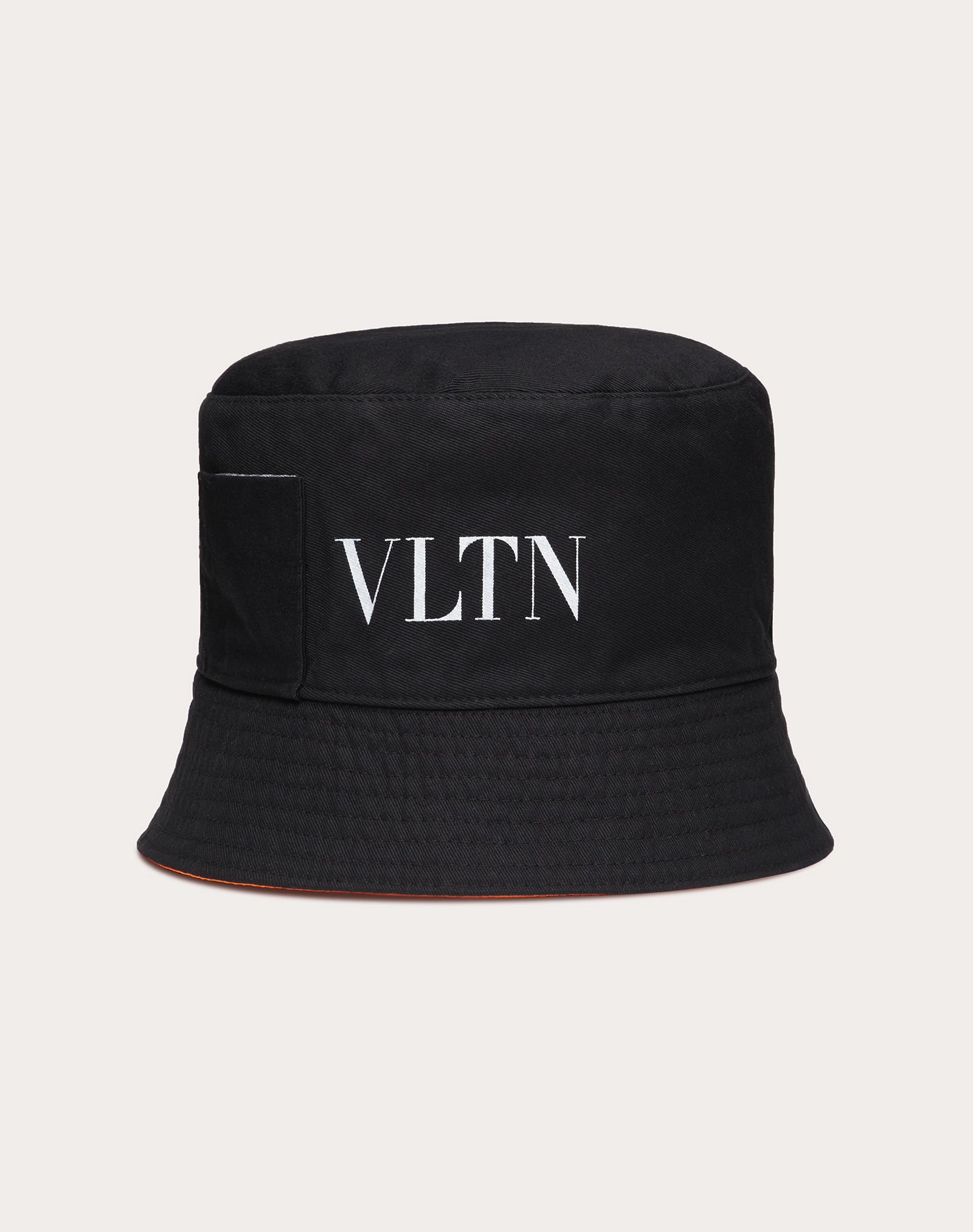 VLTN reversible bucket hat - Black cotton - Fluorescent nylon with VLTN print - Available in sizes S (57), M (58), L (59) - Adjustable strap - Made in Italy