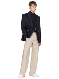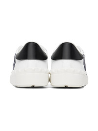 Low-top buffed calfskin sneakers in white. · Lace-up closure · Logo embossed at padded tongue · Padded collar · Logo embroidered at outer side · Buffed leather heel tab in black · Rubberized signature pyramid studs at heel counter · Buffed calfskin lining · Treaded rubber sole Supplier color: Bianco nero/Abyss