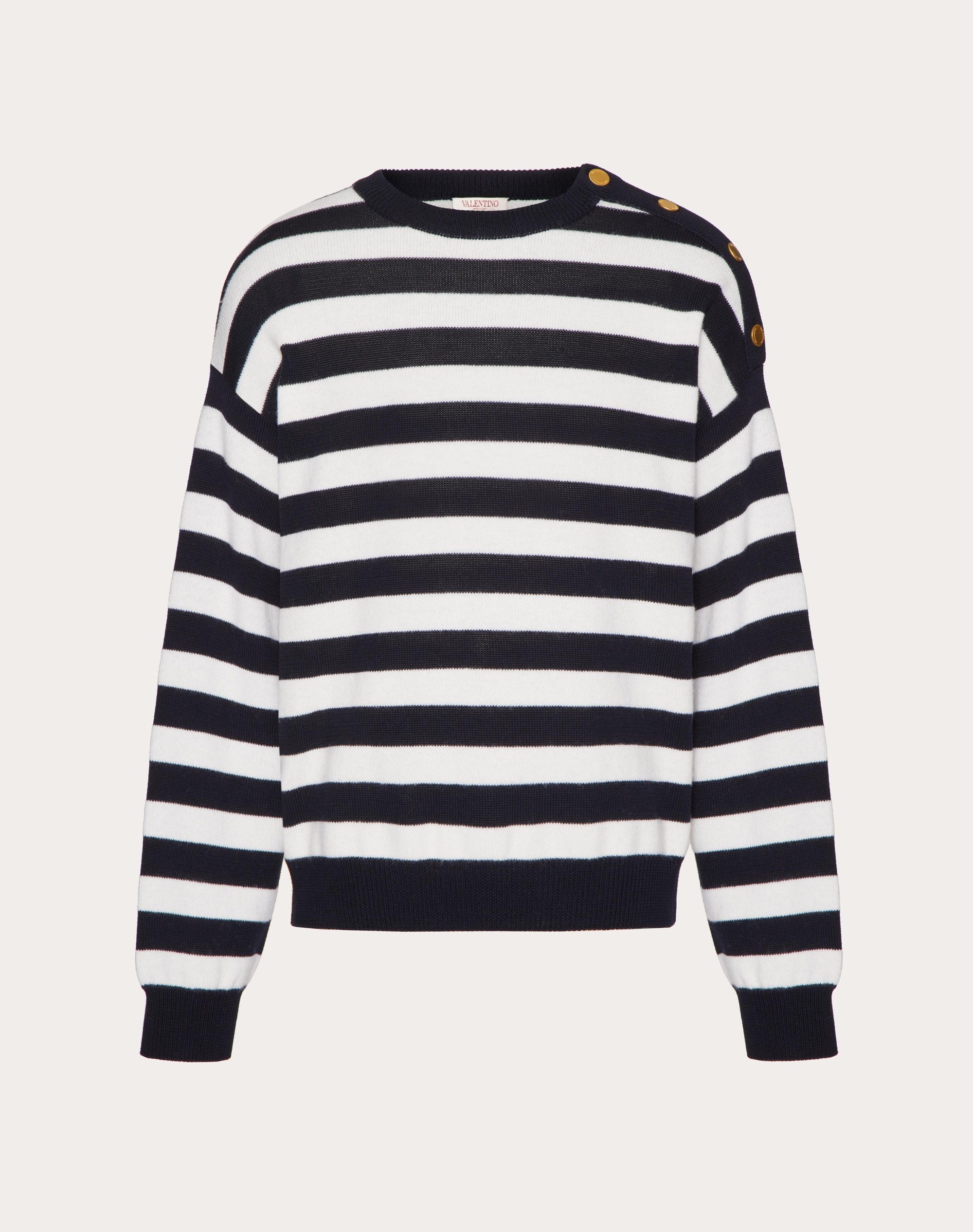 Valentino wool and cotton crew neck sweater - Boxy fit - Gauge: 7 - Jewel buttons with logo on left shoulder as worn - Composition: 50% Virgin Wool, 50% Cotton - Length: 70 cm / 27.6 in. from the back of the neck in a size M - The model is 187 cm / 6'1" tall and wears a size L - Made in Italy The look of the model is completed by Valentino Garavani Upvillage Shoes. Product code: 4V3KC29A9YG_6A1 Valentino wool and cotton crew neck sweater - Boxy fit - Gauge: 7 - Jewel buttons with logo on left shoulder as worn - Composition: 50% Virgin Wool, 50% Cotton - Length: 70 cm / 27.6 in. from the back of the neck in a size M - The model is 187 cm / 6'1" tall and wears a size L - Made in Italy The look of the model is completed by Valentino Garavani Upvillage Shoes. Product code: 4V3KC29A9YG_6A1