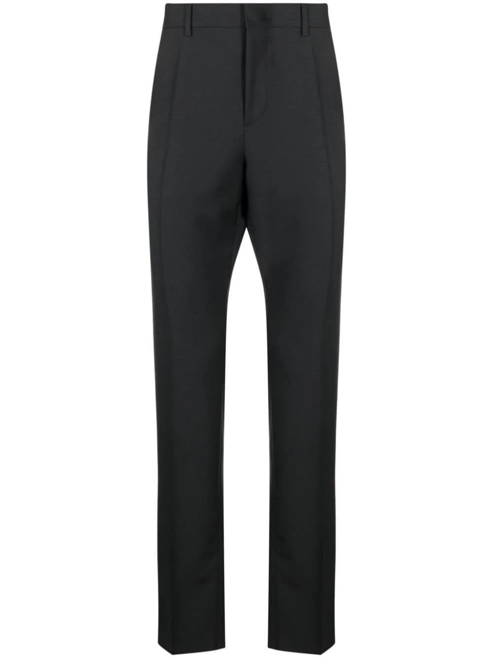 tailored straight-leg trousers Designed in a timeless navy hue, these trousers from Valentino Garavani are woven in Italy from a midweight blend of wool. Cut to a tailored silhouette, they speak to the Maison's penchant for formal and timeless styles. Highlights - Valentino ready to wear - Navy blue - Wool blend - Belt loops - Pressed crease - Tailored cut - Two side slit pockets - Two rear welt pockets - Raw-cut hem Made in Italy Composition Outer: Wool 84%, Mohair 16% Lining: Cupro 100% SIZE & FIT Model measurements Height 6 ft 2 in(1.87 m) Bust/Chest 38.18 in(97 cm) Hips 36.61 in(93 cm) Waist 29.13 in(74 cm) FittingInformation Designed for a slim fit, offering a comfortable fit that sits just away from the leg The unfinished hems allow for the length to be altered Made from a midweight non-stretch fabric This piece fits true to size – take your usual size Washing instructions Dry Clean Only