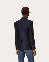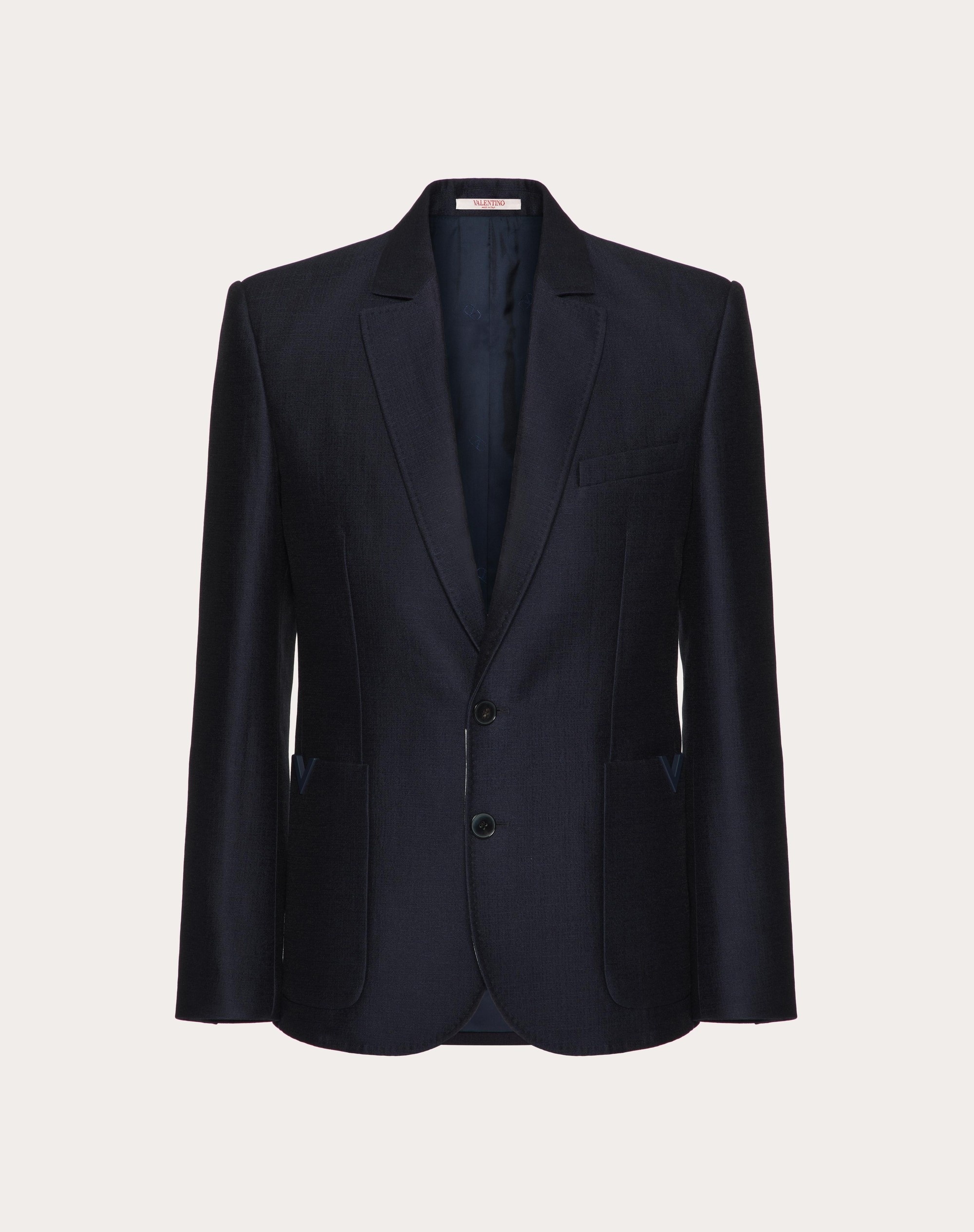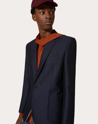Valentino single-breasted jacket in wool and silk with rubberized V Detail - Slim fit - Lined - Rubberized V Detail on both front pockets - Peaked lapels - Button closure - Two front pockets - One pocket on left side as worn - Composition: 88% Virgin Wool, 12% Silk - Lining: 100% Cupro - Length: 74 cm / 29.1 in. from the back of the neck in an Italian size 46 - The model is 187 cm / 6'1" tall and wears an Italian size 46 - Made in Italy The look of the model is completed by Valentino Garavani Rockstud Shoes. Product code: 4V3CEF759U6_598 Valentino single-breasted jacket in wool and silk with rubberized V Detail - Slim fit - Lined - Rubberized V Detail on both front pockets - Peaked lapels - Button closure - Two front pockets - One pocket on left side as worn - Composition: 88% Virgin Wool, 12% Silk - Lining: 100% Cupro - Length: 74 cm / 29.1 in. from the back of the neck in an Italian size 46 - The model is 187 cm / 6'1" tall and wears an Italian size 46 - Made in Italy The look of the model is completed by Valentino Garavani Rockstud Shoes. Product code: 4V3CEF759U6_598