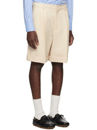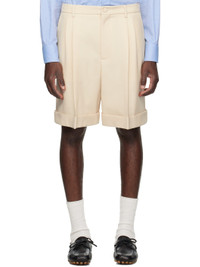 Virgin wool twill shorts. · Belt loops · Four-pocket styling · Zip fly · Pleats at front · Creased legs · Rolled cuffs · Full satin lining Supplier color: Burro Body: 100% virgin wool. Trim: 100% cotton. Lining: 100% cupro. Made in Italy 252476M193001