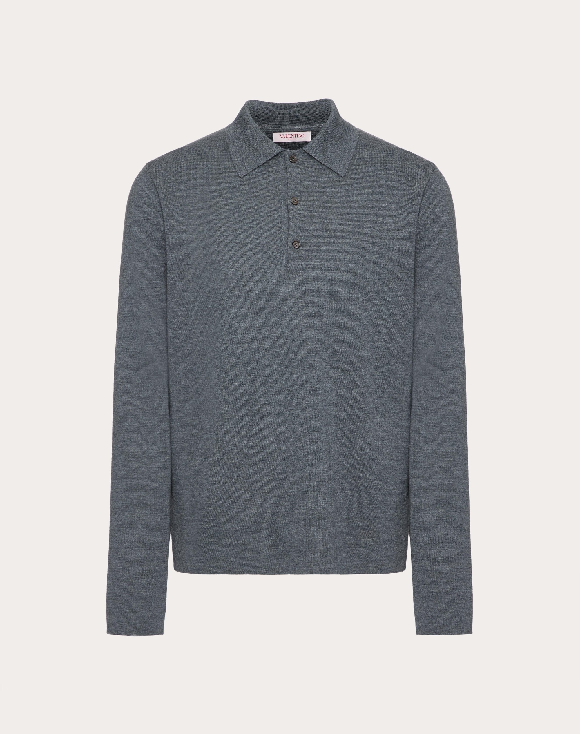 LONG-SLEEVE WOOL POLO SHIRT WITH VLOGO SIGNATURE EMBROIDERY