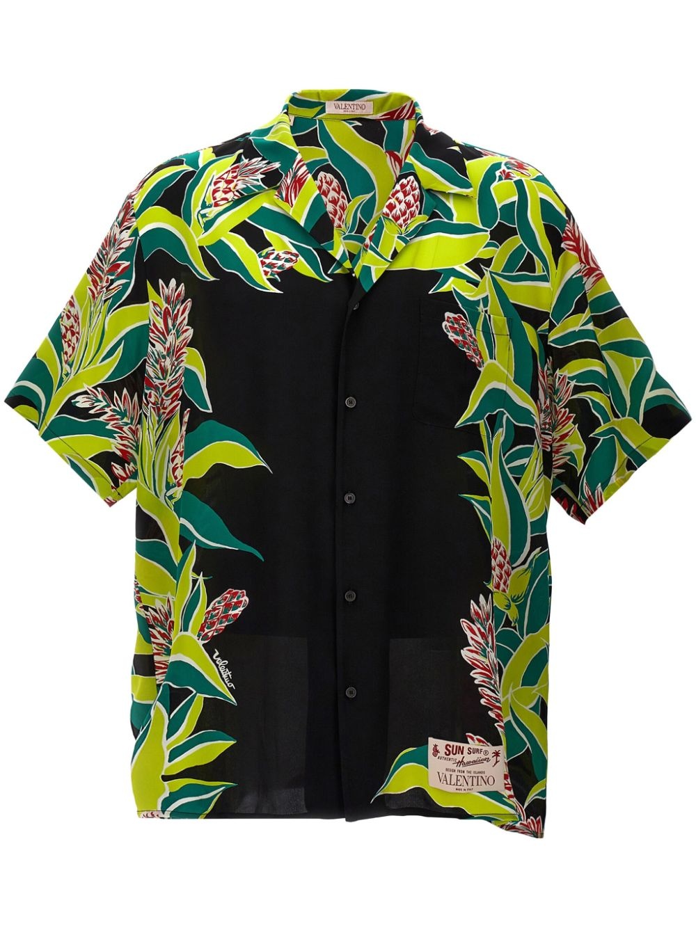 Volcano-print shirt Highlights - Black - Front button fastening - Camp collar - Short sleeves - Straight hem Imported Composition Silk 100%