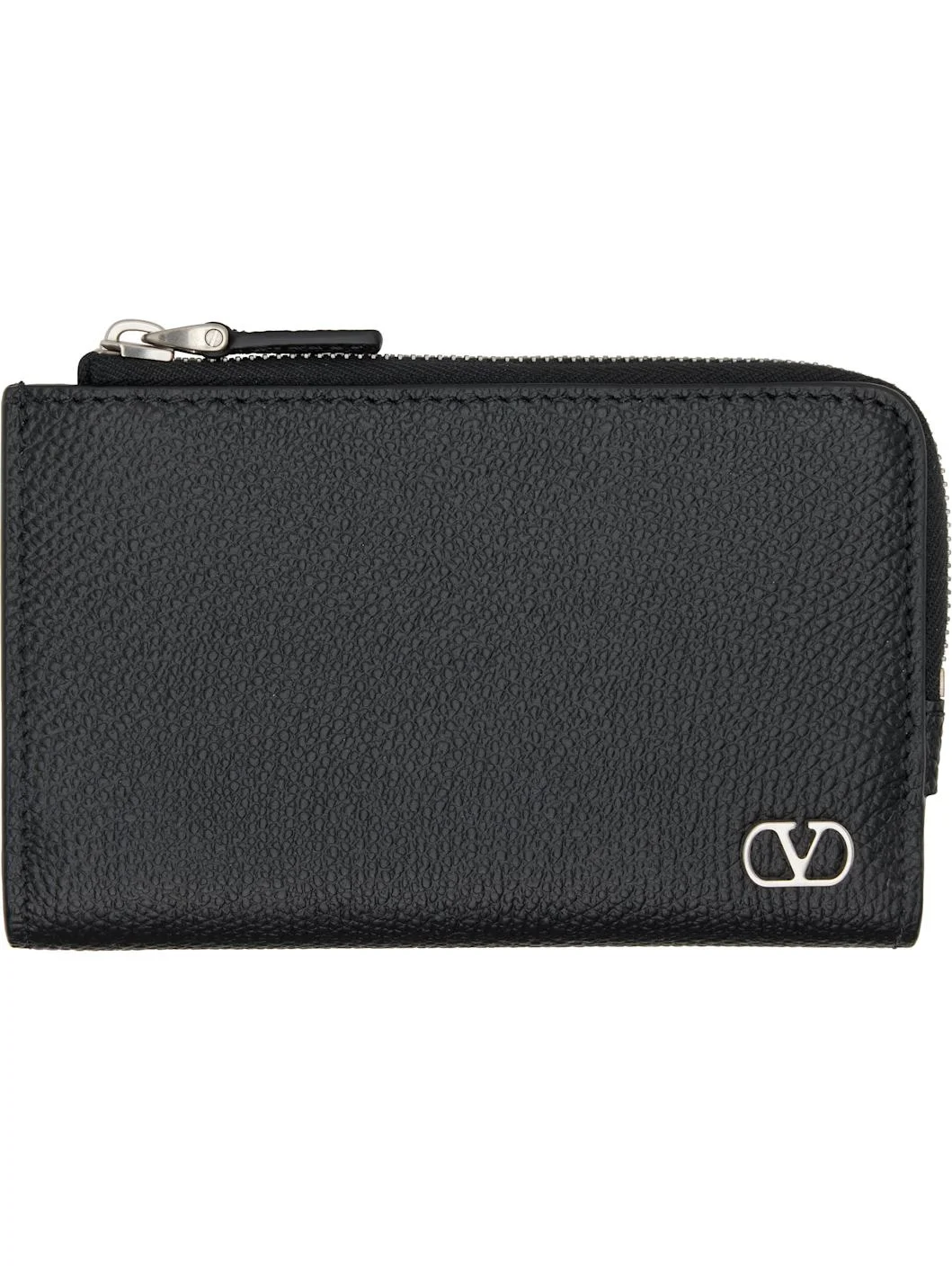 Pebble-grained calfskin wallet. · Logo hardware and zip coin compartment at face · Press-stud closure · Eight card slots at interior · Two patch pockets and one note slot · Canvas lining · Silver-tone hardware · H3.25" x W5" x D0.75" Supplier color: Nero Calfskin. Made in Italy 252807M164003