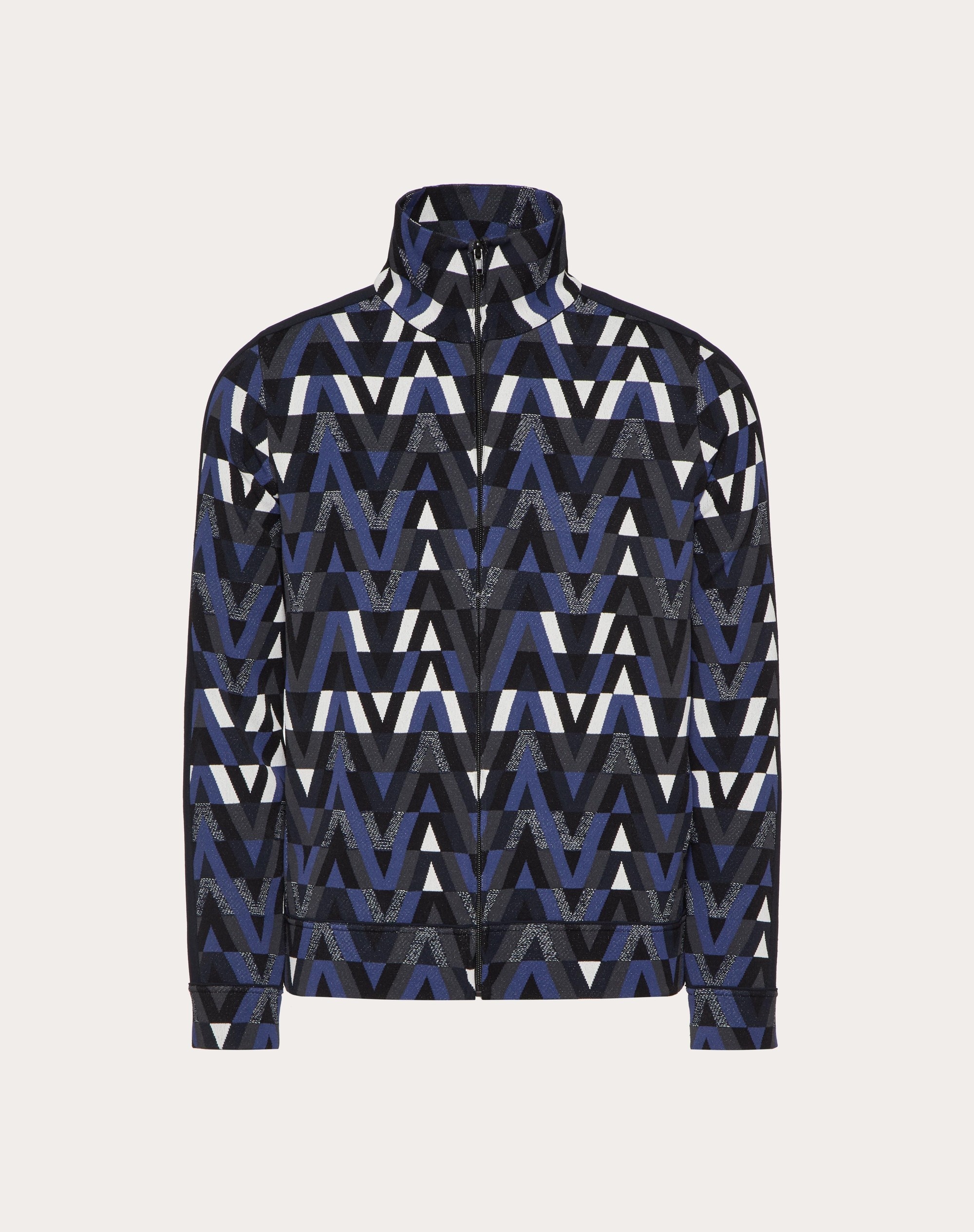 High-neck sweatshirt in jersey with zipper and all-over Optical Valentino motif. - Slim fit - Zipper fastening -Side bands - 2 side pockets - 14 gauge - Composition: 83% Viscose, 17% Polyester - Length: 68 cm / 26.7 in. from the back of the neckline in Italian size M - The model is 187 cm / 6’1” tall and wears an Italian size M - Made in Italy Product Code VKE01Q86R_N38
