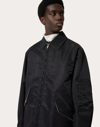 Nylon bomber jacket - Oversize fit - Lined - Lightly padded - Stud on rear collar band - Shirt collar - Zipper fastening - Two side pockets with flap - One pocket with flap and zipper on left sleeve as worn - Composition: 100% Polyamide - Lining: 100% Cupro - Padding: 100% Polyester - Available in 3 sizes: (Size 1: 42-44/16.5-17.3; Size 2: 46-48/18.1-18.8; Size 3: 50-52/19.6-20.4) - Length: 75 cm / 29.5 in. from the back of the neck in a Size 3 - The model is 187 cm /6'1" tall and wears a Size 3 - Made in Italy Product code: VCJG859LU_0NO