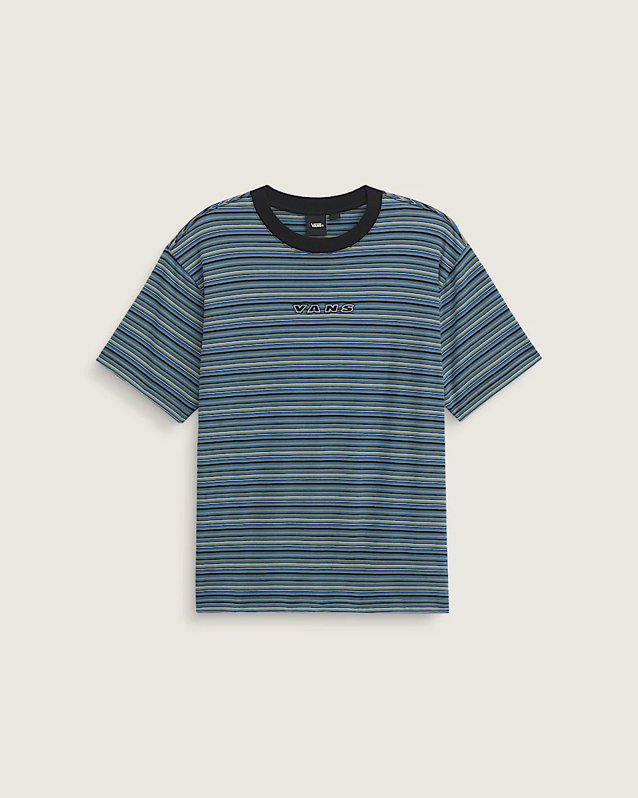 Style VN000P8MBTE The Cameron Stripe Knit Shirt keeps it relaxed with a loose fit, lightweight knit jersey, and allover stripes, so you can pull it on and roll out without overthinking your look. Details - Knit T-shirt built for easy, everyday wear - Lightweight knit jersey feels soft and breathable - Striped pattern adds a clean, low-key hit of detail - Loose fit for a roomier feel and laid-back drape - 100% cotton
