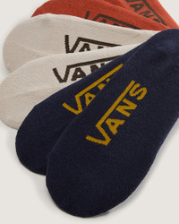 Style VN000QBZJDU The Classic No Show 3-Pack keeps things hidden and comfortable. Designed to stay out of sight while you’re on the move, these socks feature cushioned soles and a jacquard Vans logo on the bottom—because even what you don’t see should feel right. Details - No-show height stays hidden in most shoes - Cushioned sole for soft, all-day comfort - Jacquard Vans logo at the bottom - Sold as a 3-pack - 80% cotton, 13% polyester, 6% nylon, 1% elastane - Small: US Mens 3.5 - 6 / US Womens 5 - 7.5 - Medium: US Mens 6.9 - 9 / US Women’s 8 - 10.5 - Large: US Mens 9.5 - 13 / US Womens 11 - 14.5 - X-Large: US Mens 14 - 17 / US Womens 15.5 - 18.5