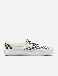 - Vans - Slip-On Reissue 98 - Slip-on - canvas uppers with the iconic checkerboard print - Ortholite® sockliners - Elastic side accents - Color: LX Checkerboard Black/ Off White - Material: Textile, Rubber - See more Sneakers and Shoes